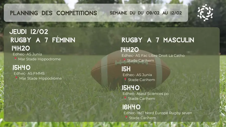 Voici le planning des compétitions de la semaine du 09/02 au 15/02.